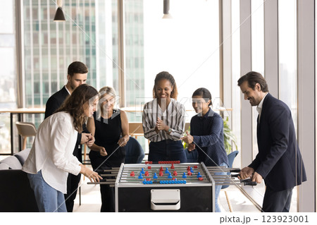 Busiesspeople posing in modern office, having training workshop or business seminar