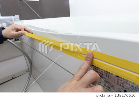 浴室のコーキング打ち換え時のマスキングテープでの養生