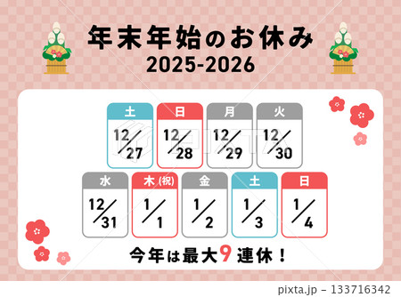 2026年末年始のお休みカレンダーデザイン素材イラスト