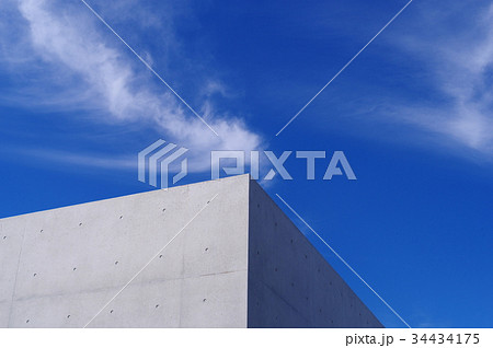打ちっ放しのコンクリート壁と晴れた空 a-2 高彩度