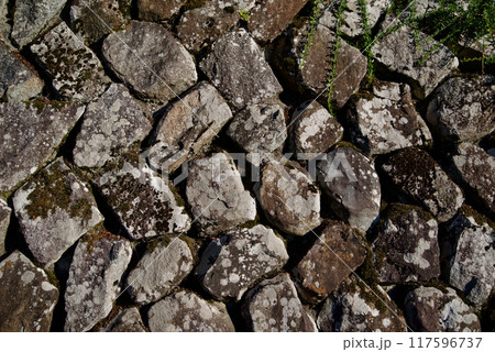 古くから続く農家の打ち込み接ぎの石垣 背景素材 テクスチャ