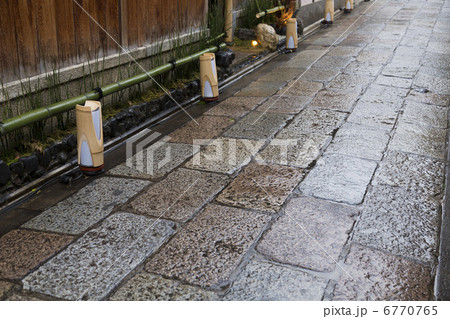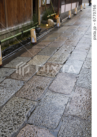 京都祇園 和の佇まい 打ち水した石畳の町並み
