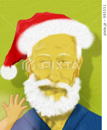 サンタの衣装を着てジャンプする男性の手描きイラスト