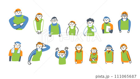 小学生から中高年までの身軽な身なりをした市井の人々 ボランティア セット イラスト素材