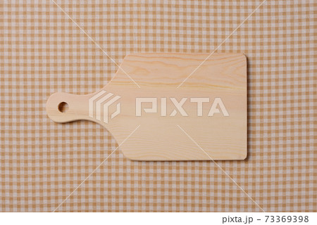 茶色いチェック柄の上のカッティングボード