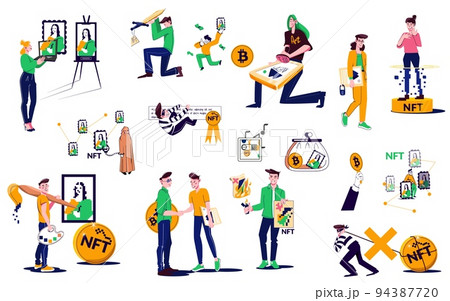 NFT Token Cryptocurrency Flat Icon Set