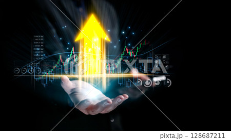 Hands Reaching for Success with Financial Graphs and Upward Arrows Illustrating Growth and Prosperity in a Digital Business Environment. Qubit