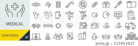 ベクターの医療の線画アイコンセット