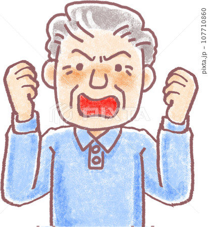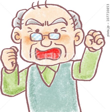 パステル調の人物_高齢男性_おじいちゃん_怒る