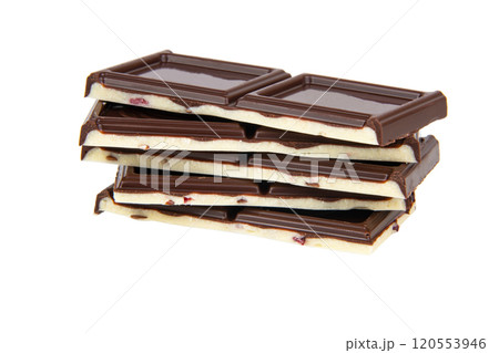 Dark and white double chocolate with berry isolated on the white background