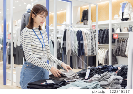アパレル商品 洋服を綺麗に折りたたむ女性
