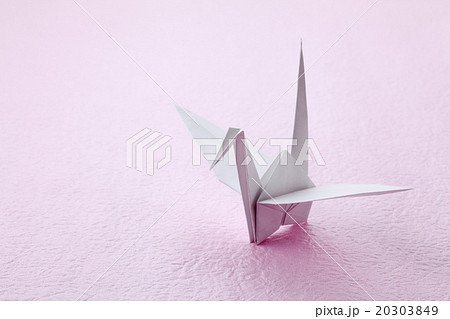 銀紙の折り鶴縦位置下あきピンクバック