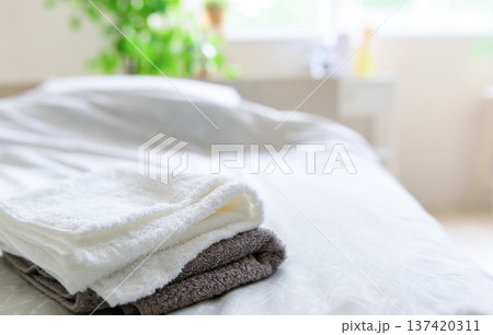 ベッド上の清潔なタオル