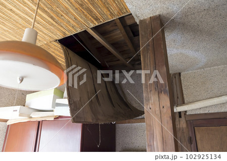 天井が抜け落ちた古民家