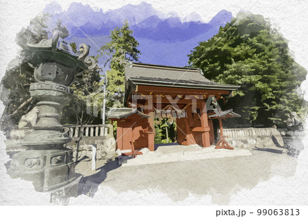 水彩画風 一之宮貫前神社 総門 群馬県富岡市