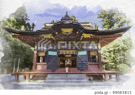 水彩画風 一之宮貫前神社 拝殿 群馬県富岡市
