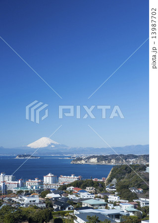 逗子市披露山から逗子マリーナ 江ノ島 富士山方面を望む