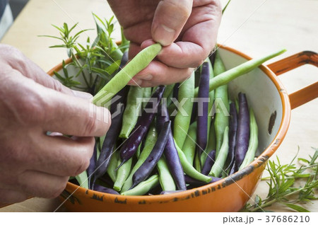 雨と花に抱かれて。ニホンアマガエル・日本雨蛙。そして花菖蒲、追風・おいかぜ