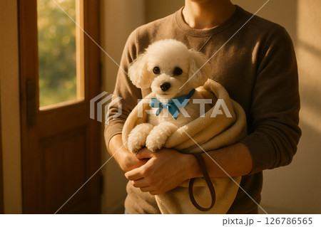 抱かれて耐えている可愛いハチワレ猫 可愛い手と足