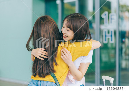 空港で再会する女性友達 「撮影協力:関西国際空港(KIX)」