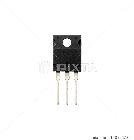 A single black power transistor electronic component with three silver metal conductor leads