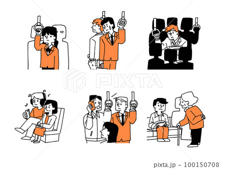 電車やバスの中での犯罪や迷惑行為のイラストセット