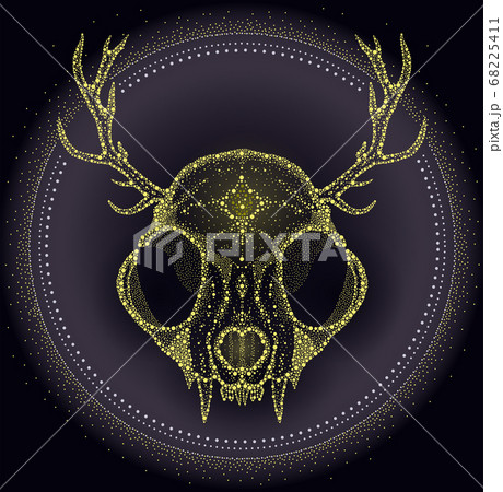 Ram skull with a geometric symbol on a dark background. Vector illustration.