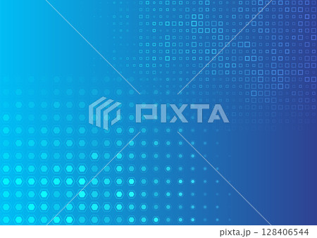 Mosaic hexagons and squares on blue background, geometric abstract design