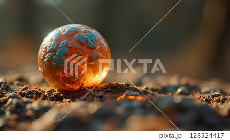 Glowing orb on the ground illuminates the earth with radiant light and mesmerizing patterns