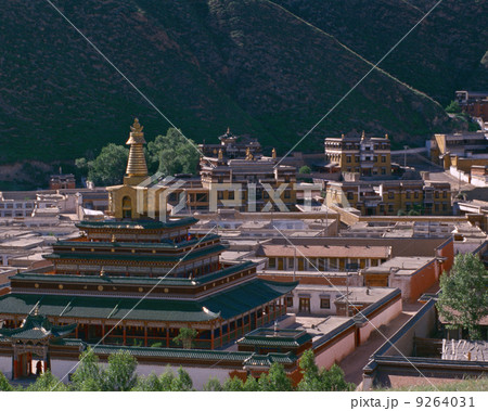 甘粛省夏河 タンカ台から見た拉卜楞寺