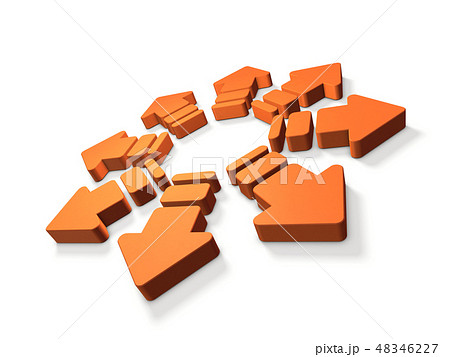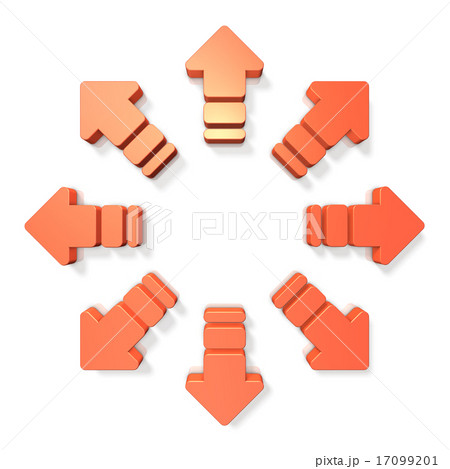 外向きに広がる矢印。拡散を表すアブストラクト