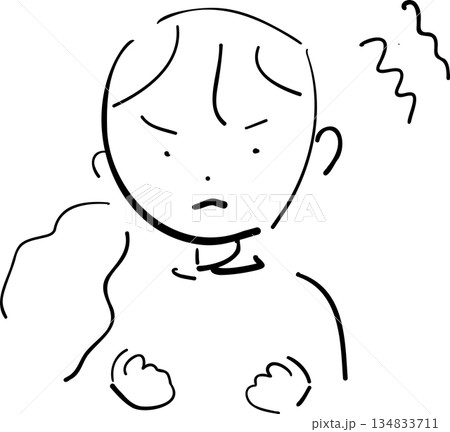 怒る女の子の線画イラスト