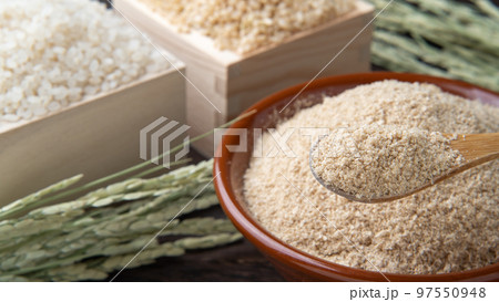 米ぬか・イメージ|玄米と稲穂と米ぬか