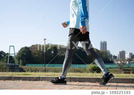 ジョギングをする女性 日差し