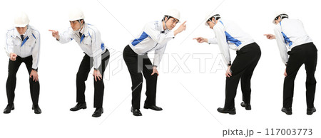 ヘルメット作業着ユニフォームの工場・建設勤務の男性の全身人物切り抜き素材