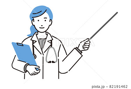指し棒を持つ白衣の女性医師