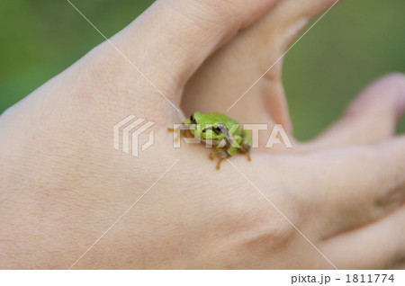 アマガエルと手
