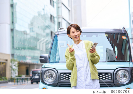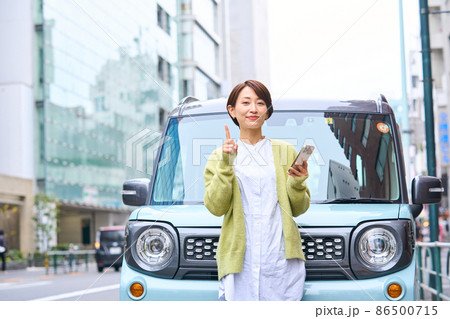自動車 女性 スマホ 車外