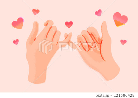 指切り、約束している手 クレヨンで手描きしたようなイラスト
