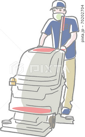 マスクをして掃除機を使う清掃員