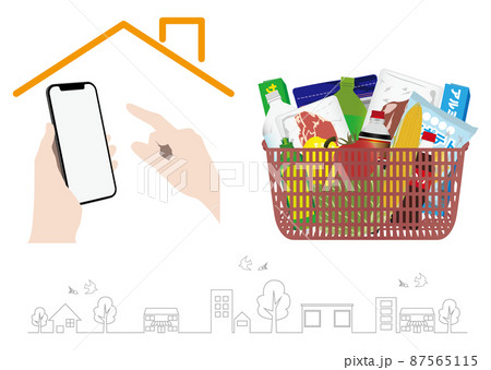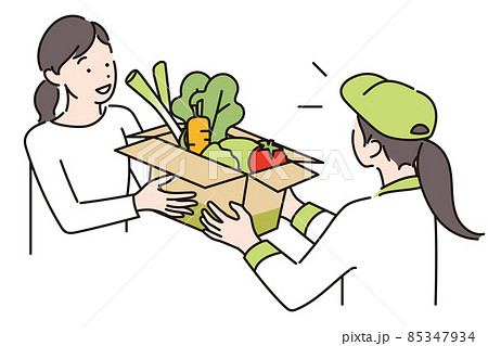 シンプル イラスト 食品宅配サービスを利用する子育て世帯のイメージ セット