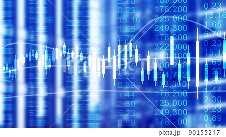 股票市場K線條圖表概念創意圖,模糊的金融中心建築爲背景