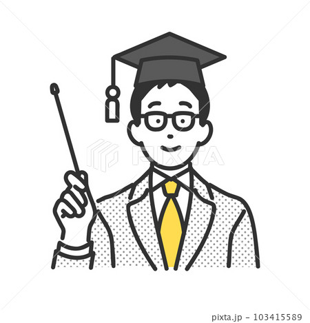 指示棒を使って説明をする先生・講師の男性のイメージイラスト素材