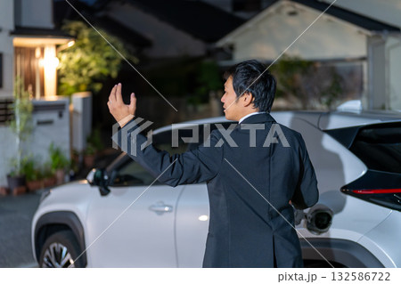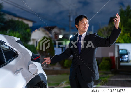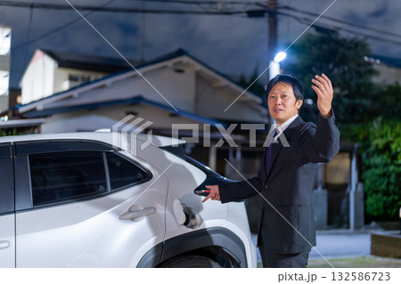 給油の位置を案内するビジネスマンのジェスチャー