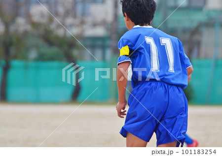 少年サッカーの試合(試合の司令塔キャプテンの選手)