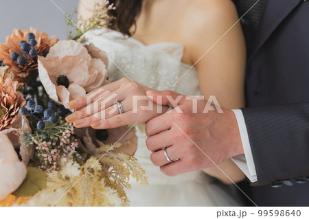結婚指輪をした男女の手の写真 夫婦のイメージ画像