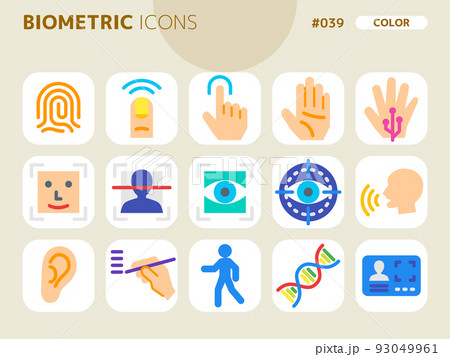 シンプル イラスト いろいろな生体認証の種類のアイコンセットのベクターイラスト