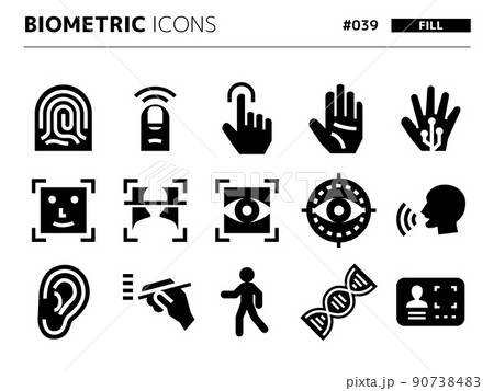 生体認証に関連する塗りつぶしスタイルのアイコンセット_039