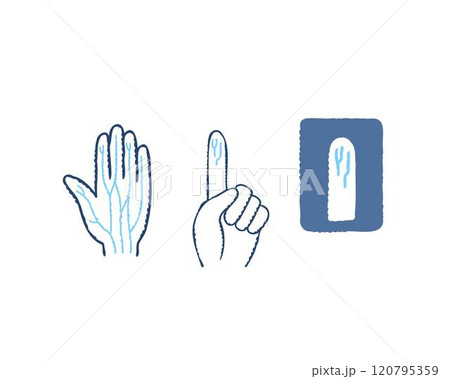 生体認証、手、指、静脈、人差し指を表すラインスタイルのアイコン