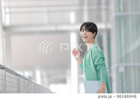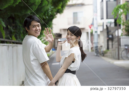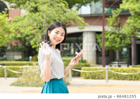 振り向く 手を振る 女性 私服の画像素材(写真・イラスト) 1ページ目